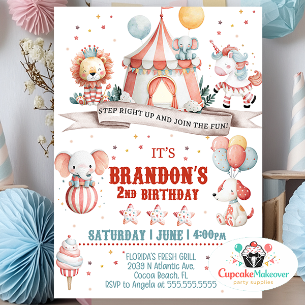Perfect for kids’ birthdays, circus-themed parties, and carnival celebrations, this invitation sets the tone for an unforgettable day full of fun, laughter, and excitement.