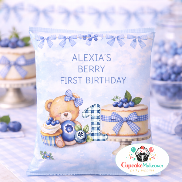 Celebrate your little one’s milestone with this adorable blueberry first birthday bottle label, designed to create the perfect soft, elegant party aesthetic. Featuring a sweet teddy bear, delicate blue bows, and a charming berry theme, this label transforms simple milk bottles into stunning party decor.