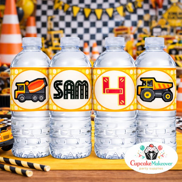 Use these beautiful printed construction bottle labels to complete your construction-themed party or construction birthday event! An easy and fun way to tie together your construction party decor, dessert table, and party favors for a picture-perfect celebration.